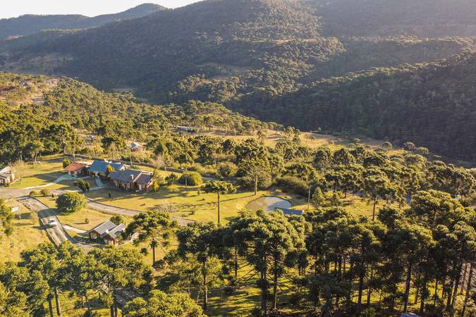 Localizada em ampla área verde com mais de 66 mil m², o Village Pedra Preta oferece chalés privativos, aconchegantes, com banheira de hidromassagem, lareira e vista para as montanhas com integração total à mata nativa de Aracuárias.