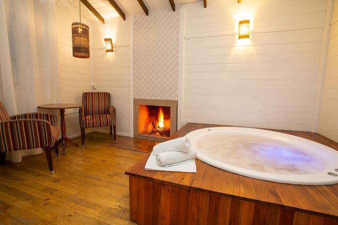 Com decoração rústica, muito aconchego e conforto, os chalés da categoria Master são diferentes entre si, porém todos com as mesmas características. É um ambiente único integrado com cama queen size, banheira de hidromassagem dupla, lareira, ducha com aquecimento