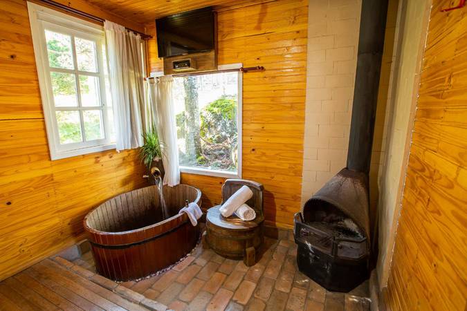 Nestes chalés você encontra quartos aconchegantes sem banheira, lareira, TV 32" e ducha com aquecimento a gás. E há três opções: um chalé sem cozinha, um com cozinha e outro com cozinha e churrasqueira. Qual é a sua escolha?